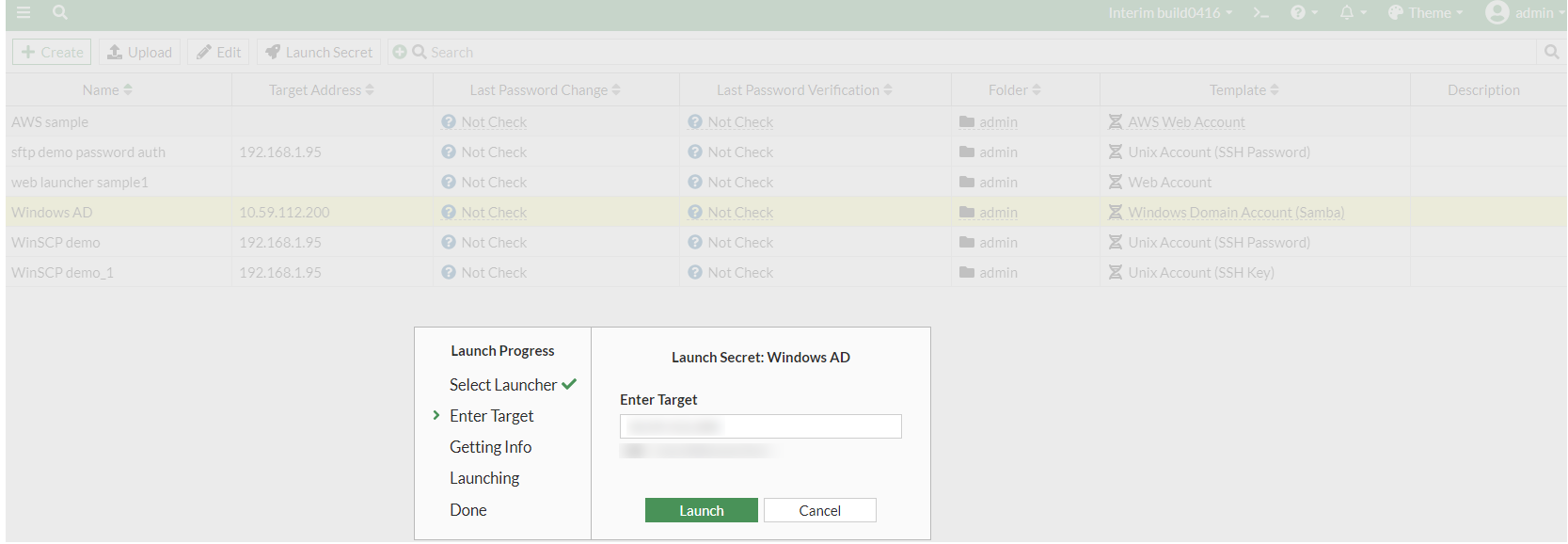 In Secrets > Secret List, select the newly created secret, and select Launch Secret.