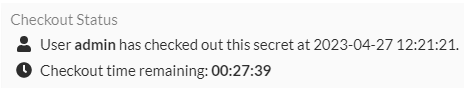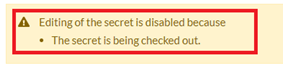 For other users who attempt to use the secret while it is checked out, they see a message indicating that someone else has checked out the secret, and the secret will only be available once it is checked in.