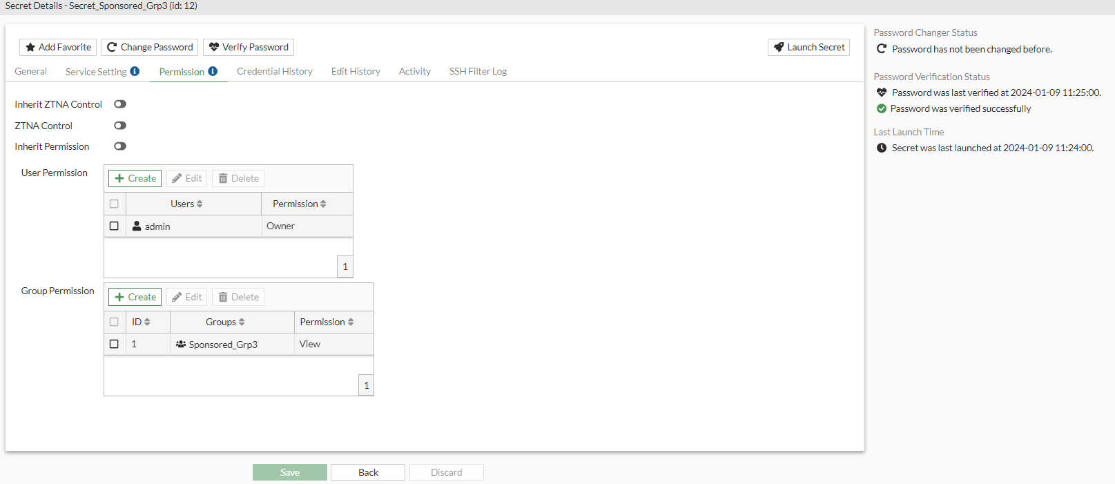 Creating a secret with view permission for the sponsored group