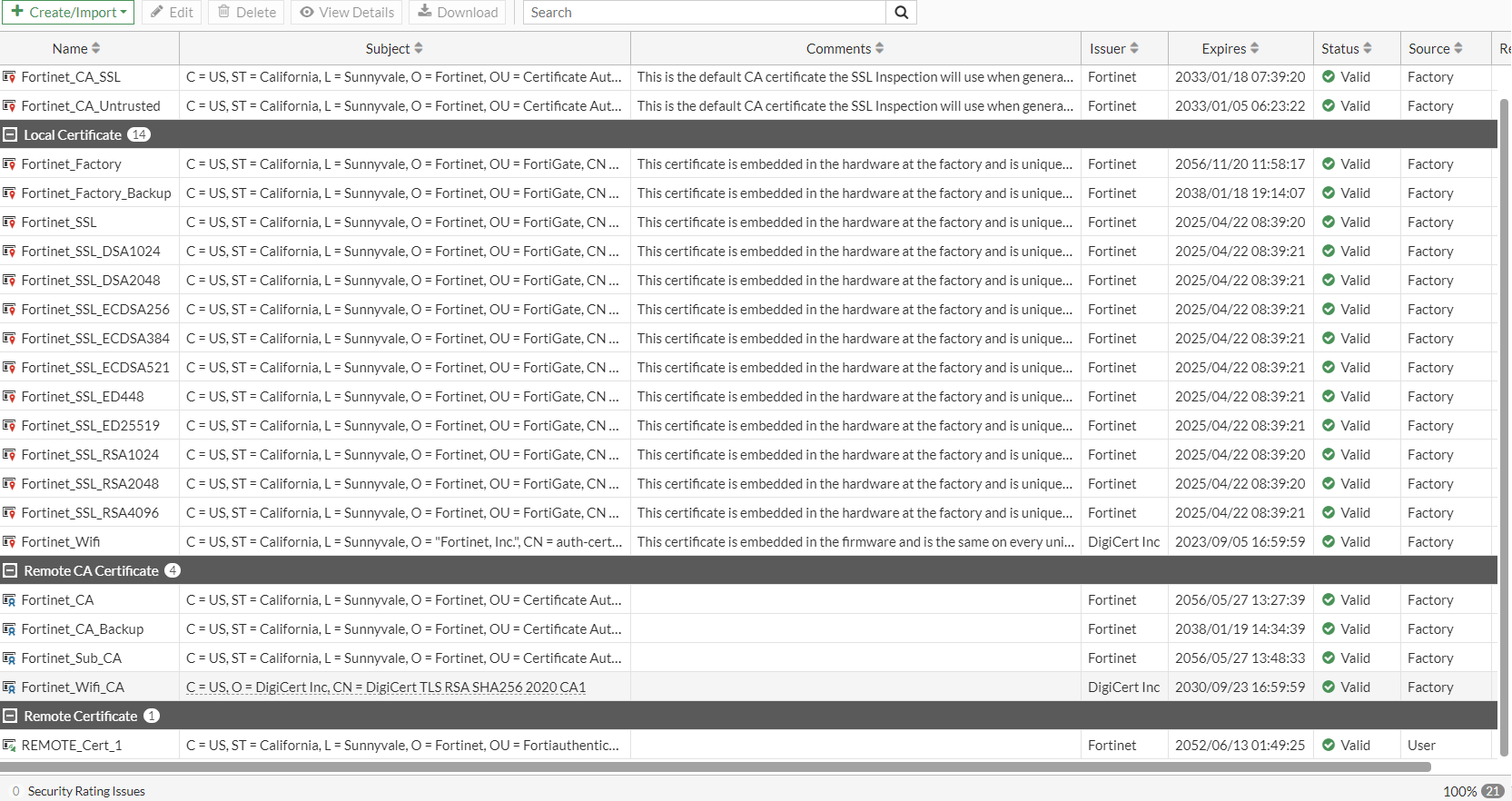 - Go to System > Certificates and from the +Create/Import dropdown, select Remote Certificate.