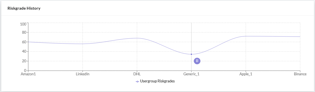The Riskgrade History chart shows the group's performance across campaigns from the oldest to newest. Hover over the chart to view the group's grade.