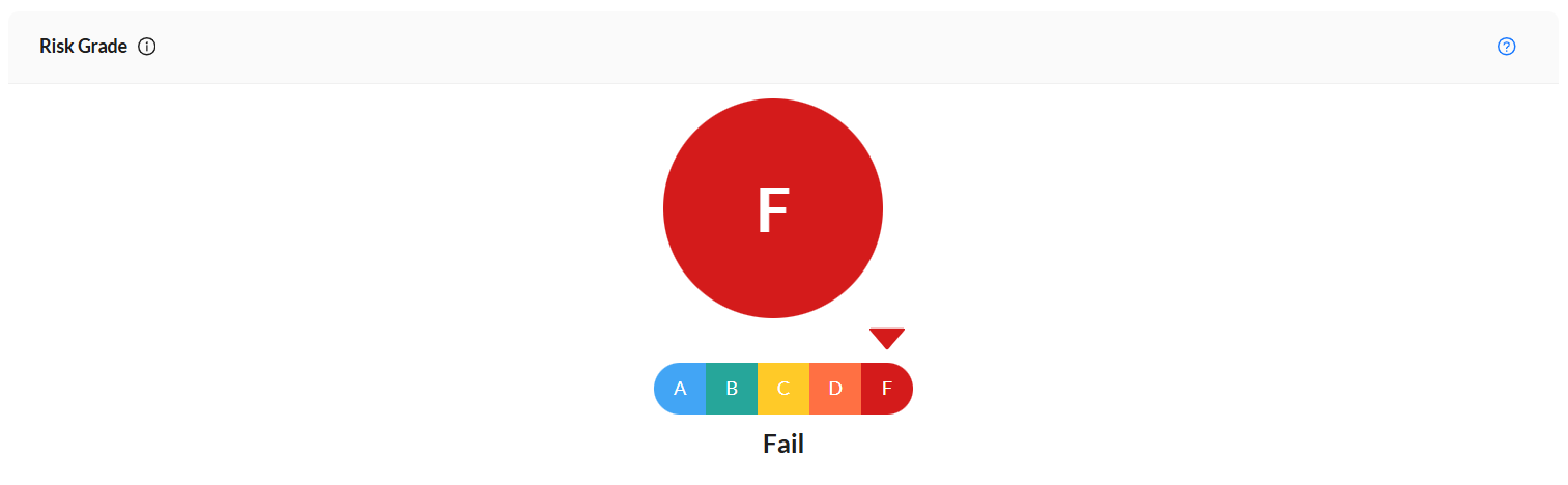 The letter grade between A and F assigned to the organization. An A indicates the user poses minimal risk and a F grade indicates the user poses the maximum risk to the organization.
