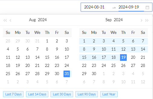 Use date picker on top right corner to filter the Campaign Analysis and Awareness Factors data by selected time period. You can either select Start Date and End Date or a quick filter (Last 7, 14, 30, 90 days, or one year).