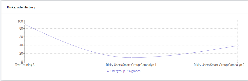 The Riskgrade History chart shows the group's performance across campaigns from the oldest to newest. Hover over the chart to view the group's grade. See Risk Grade History.