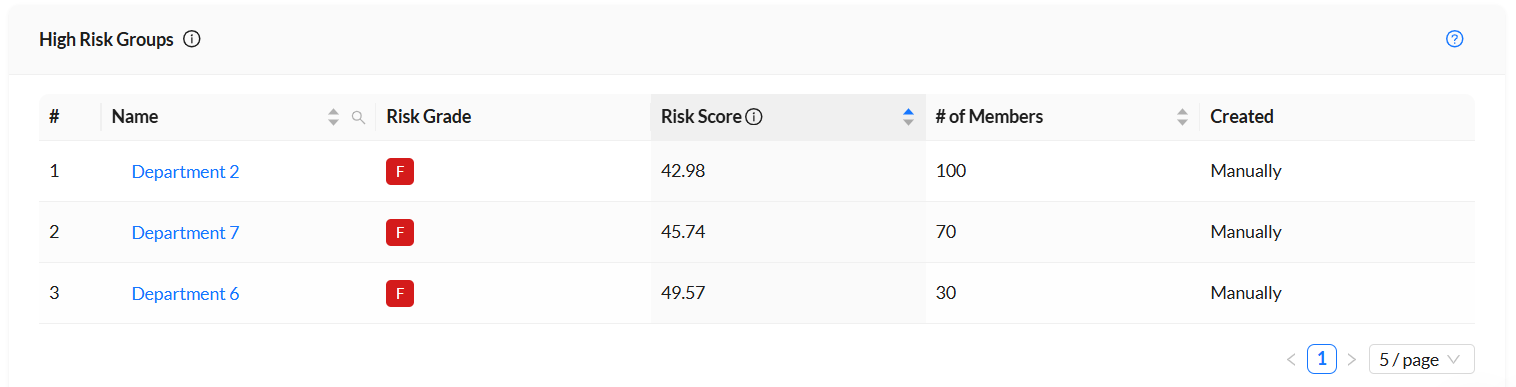 Displays a list of user groups who have consistently exhibited high-risk behavior across all time periods. The following information is displayed.