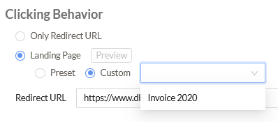 Custom landing pages appear in the Clicking Behavior section of the campaign wizard for both global and custom templates. See Creating campaigns .