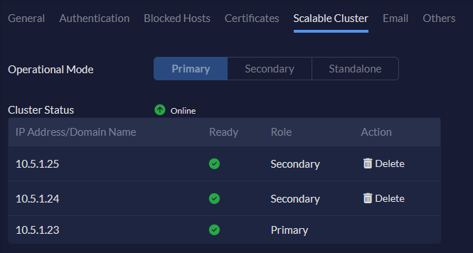 In System > Settings > Scalable Cluster, click Delete on the node to be removed.