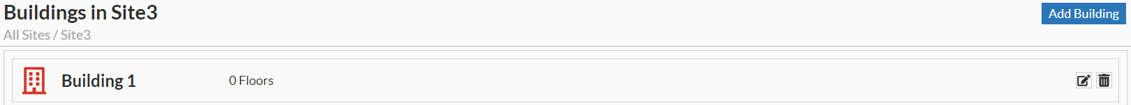 (Details) icon against a particular site, and click Add Building. - Enter a unique Name for the building and site. Click Ok.