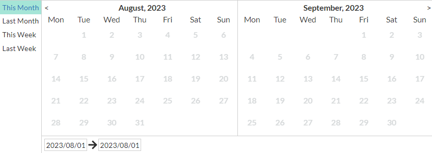 Historic DateRange wise Data - A calendar option is provided in the dashboard that allows you to select a specific date range for viewing FortiPresence data or view weekly (current and last)/monthly (current and last) data.