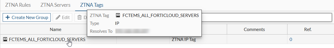 config endpoint-control fctems edit "ems139" set fortinetone-cloud-authentication disable set server "172.16.200.139" set https-port 443 set source-ip 0.0.0.0 set pull-sysinfo enable set pull-vulnerabilities enable set pull-avatars enable set pull-tags enable set pull-malware-hash enable unset capabilities set call-timeout 30 set websocket-override disable next endWhen the entry is created, the capabilities are unset by default.