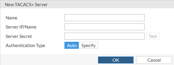 Click OK to create the new TACACS+ server.