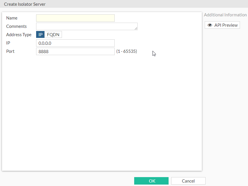 Select the type of isolator server address, either IP or FQDN. |