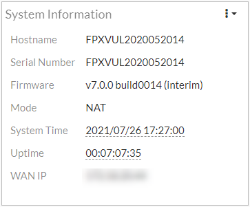 The System Information widget displays general system information, such as the FortiProxy unit serial number, firmware version, host name, and system time. Clicking on the widget provides you links to two other pages: