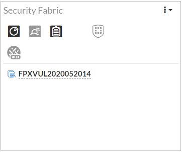 You can hover over the icons along the top of the Security Fabric widget to get a quick view of the status of various components of in the Security Fabric. Hover over the host name to display system information.