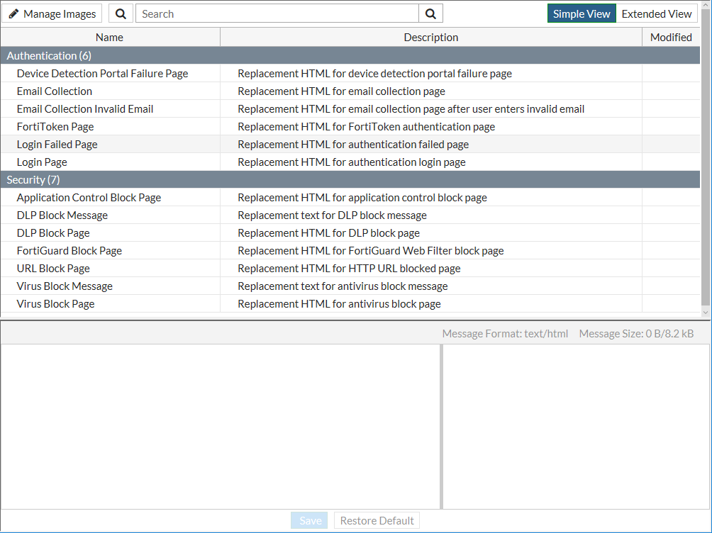 The following table outlines all of the messages that can be customized, as shown in Extended View: