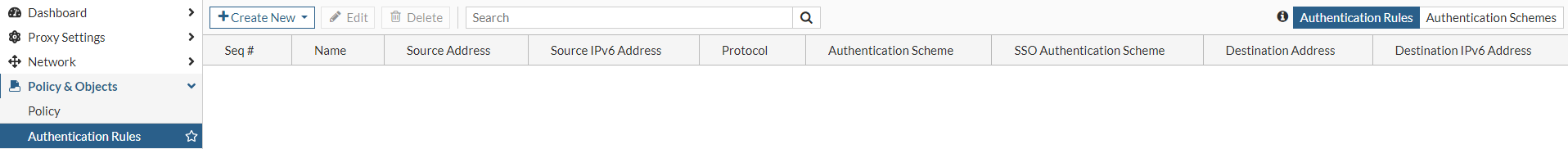 | Authentication Rules/Authentication Schemes | Select Authentication Rules to see a list of authentication rules. Select Authentication Schemes to see a list of authentication schemes. |