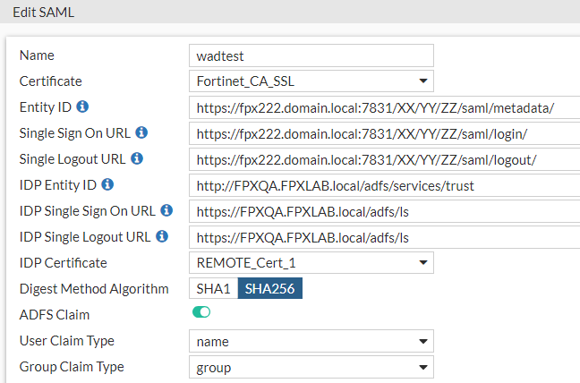 set idp-single-logout-url "https://FPXQA.FPXLAB.local/adfs/ls"