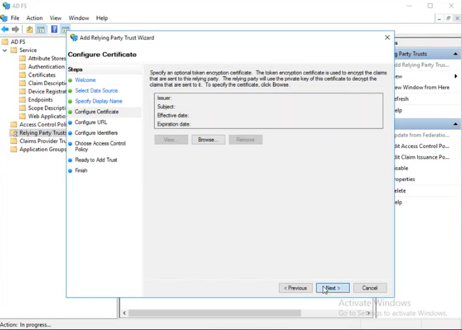 On the Configure Certificate page, click Next to skip the configuration.