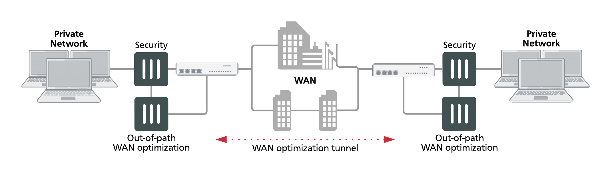 One of the benefits of out-of-path WAN optimization is that out-of-path FortiProxy units only perform WAN optimization and do not have to process other traffic. An in-path FortiProxy unit configured for WAN optimization also has to process other non-optimized traffic on the data path.