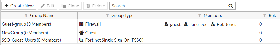 The type of group: Firewall, Fortinet Single Sign-On (FSSO), RADIUS Single-Sign-On (RSSO), or Guest. |