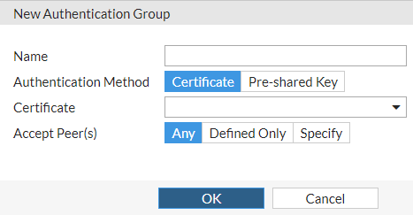 Select the peer acceptance method for the authentication group.