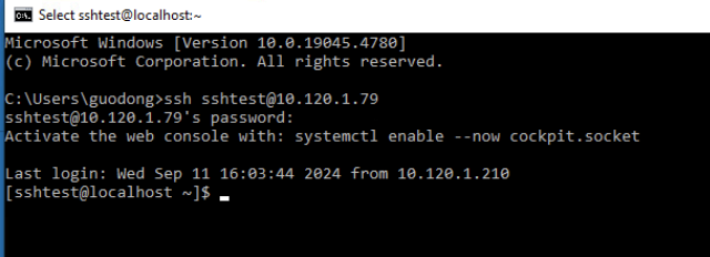 Log in to the SSH server using the account that will be granted remote SSH access (in this example: sshtest):