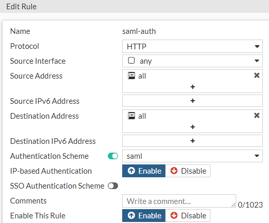 FPX222 # sh authentication rule saml-auth