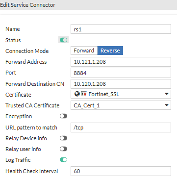 FortiProxy as reverse proxy to service connector