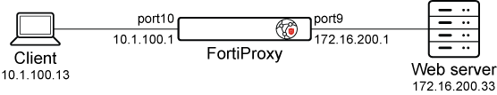 The following FortiProxy configuration is used in the three explicit proxy traffic logging use cases in this topic.
