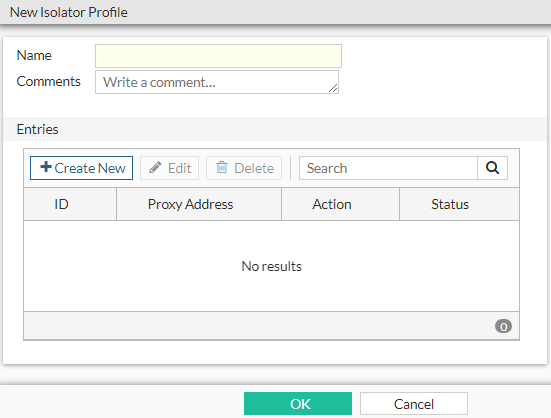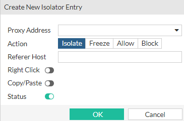 To configure an isolator profile in the GUI, go to Policy & Objects > Isolator Setting > Profiles, select an existing isolator profile and then click Edit or click Create New to create a new one. Configure the following options, and click OK.