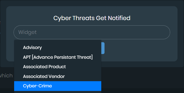 - Go to Adversary Centric Intelligence > OSINT - Cyber Threats, and click the Add Subscription button. The Cyber Threats Get Notified dialog is displayed.