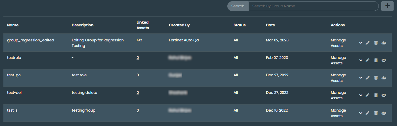 The following table presents examples of visible and hidden assets based on the groups that a user is assigned to: