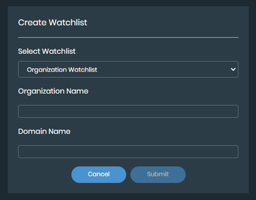 Users can monitor certain vendor and organization names in the My Watchlist page in the Vendor Watchlist and Organization Watchlist, respectively. If a match for a monitored asset appears, it triggers an alert. Vendors and organizations can be added to the watchlist manually by users or automatically by EASM.