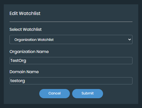Search the asset you want to edit and click Edit icon. The Edit Watchlist dialog is displayed.