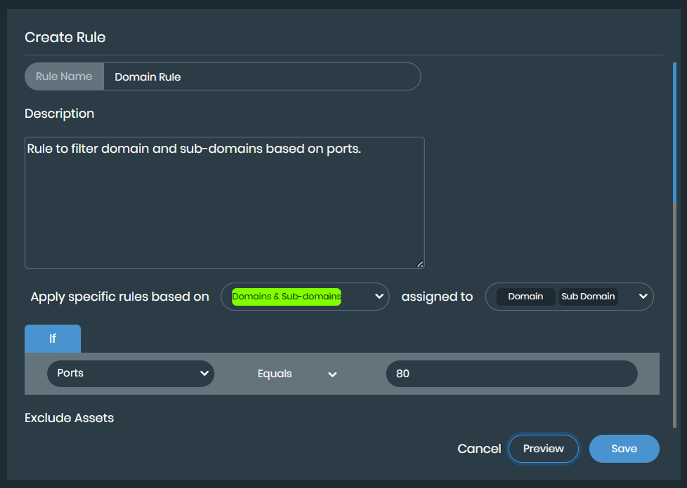 Click Preview to see a sample of assets the rule would affect displayed in the Assets Tagged section.
