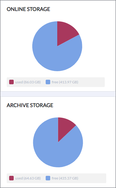 An example of total usage for Online Storage and Archive Storage is shown here: