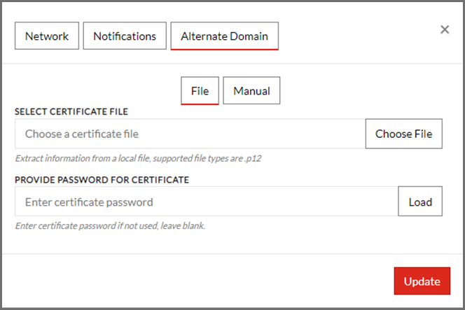 From here, you can select File if you have a file in PKCS#12 format, or select Manual to provide the information manually.
