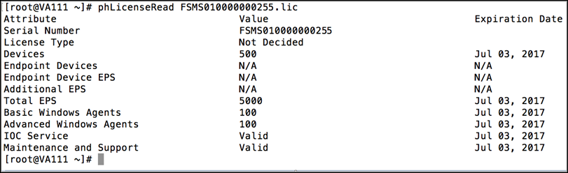 /opt/phoenix/binin the Supervisor node. Make sure the permissions are correct (root/root). - Execute the command on the license file downloaded in Step 6 to verify the license information: