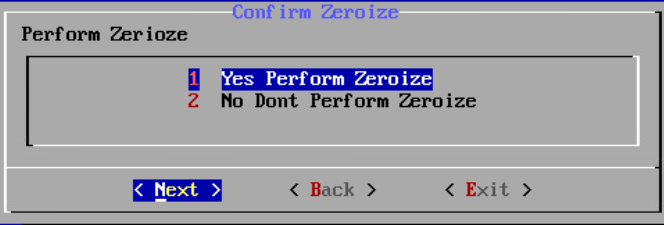 - If you click Next, another dialog box to reconfirm Zeroize appears. Click 1 Sure perform zeroize. Select Next and press Enter to continue.