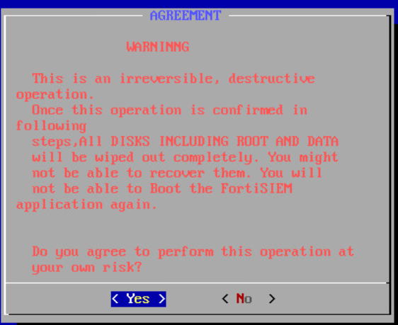 The shell scripts prepare_boot_loader.sh and boot_loader_operations.sh erase all of the data from all of the disks in the FortiSIEM system. The prepare_boot_loader.sh script loads the FortiSIEM boot loader. The boot_loader_operations.sh script automatically reads all the disks, including OS disk, and iteratively fills them with zeros twice to ensure that no data remains on the disk.