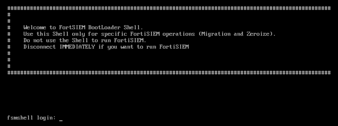 prepare_boot_loader.sh. The system will be rebooted.# prepare_boot_loader.sh - Use the arrow keys on the keyboard to select FortiSIEM Boot Loader from the boot menu.