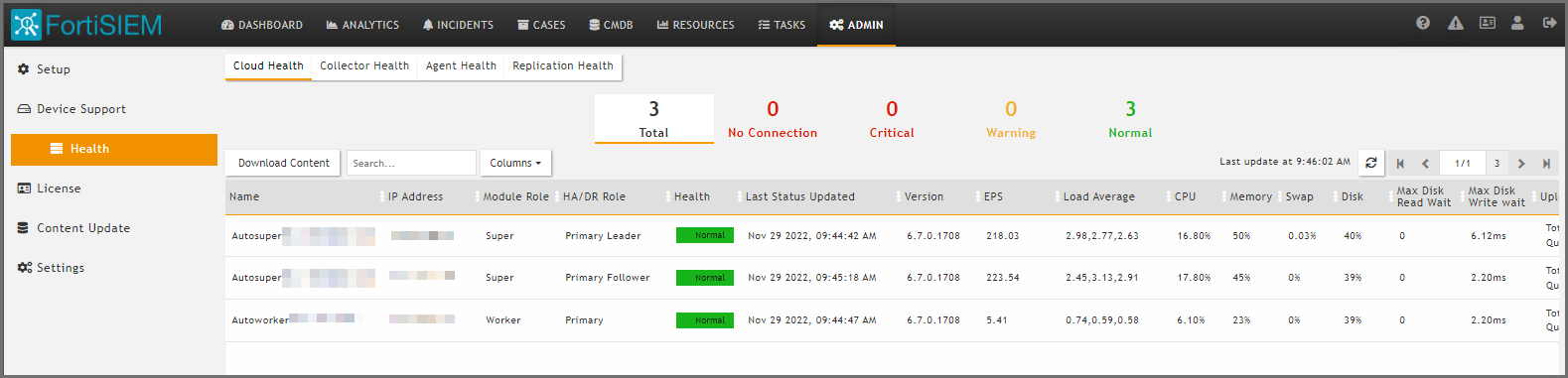 If you decide to not use a Load Balancer, you can list the Supervisors individually in ADMIN > Settings > Cluster Config > Supervisors. Make sure that the Supervisor addresses or host names are reachable from the Collectors, Agents and GUI users. A GUI user can log in to any Supervisor and use FortiSIEM.