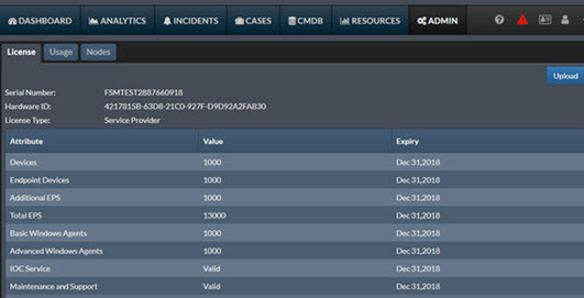 [root@Autosuper### ~]# phLicenseRead FSMTEST########-####-####-####-#############.lic License Information: Attribute Value Expiration Date Serial Number FSM############# Hardware ID ########-####-####-####-############ Licensed Hardware ID ########-####-####-####-############ License Type Not Decided Devices 1000 Jun 19, 2025 Endpoint Devices 10 Jun 19, 2025 Additional EPS 1000 Jun 19, 2025 Total EPS 11020 Jun 19, 2025 Agents 100 Jun 19, 2025 UEBA Telemetry 100 Jun 19, 2025 IOC Service Valid Jun 19, 2025 High Availability Support Valid Jun 19, 2025 Maintenance and Support Valid Jun 19, 2025