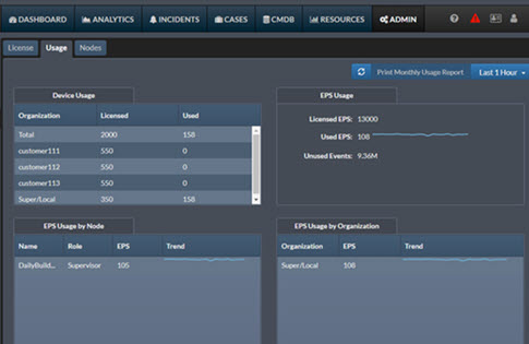Requires FortiSIEM 7.2.2 or later. Only available for on-premises VM based deployments. License is based on: The user is allowed to have 11 violations in a rolling 30-day window. After that, the Analytics and Dashboard pages are disabled for 1 day. In this license scheme, users can have as many devices and events per second (EPS) as can be supported by their deployed hardware, without violating the Total Raw event size per day (GB/Day) limits. |