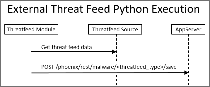 In this framework, FortiSIEM calls a Python module based threat feed, passing it a number of arguments necessary for communication with a threat feed. This framework then writes the threat entries to a CSV file which AppServer will parse. The framework is also extendable. If the customer knows the natural ID of the threat feed, the customer can run a script externally from FortiSIEM, providing their username and password for basic authentication to call AppServer’s API to update the threat feed.