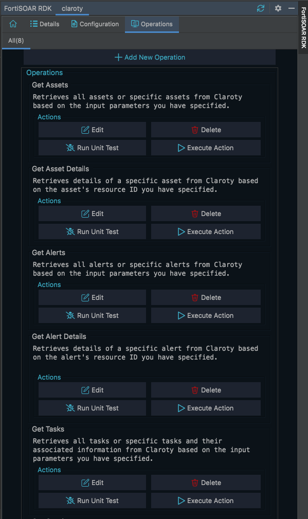 operations.py file. Therefore, in this case, the info.json file gets populated with the information of the new operation; however, you require to manually add the functions and mappings of the existing (previous) operations to the operations.py file.info.json file; however, the operation.py file has to be manually updated.fortisoar-rdk-pycharm-1.0.0-19.zip