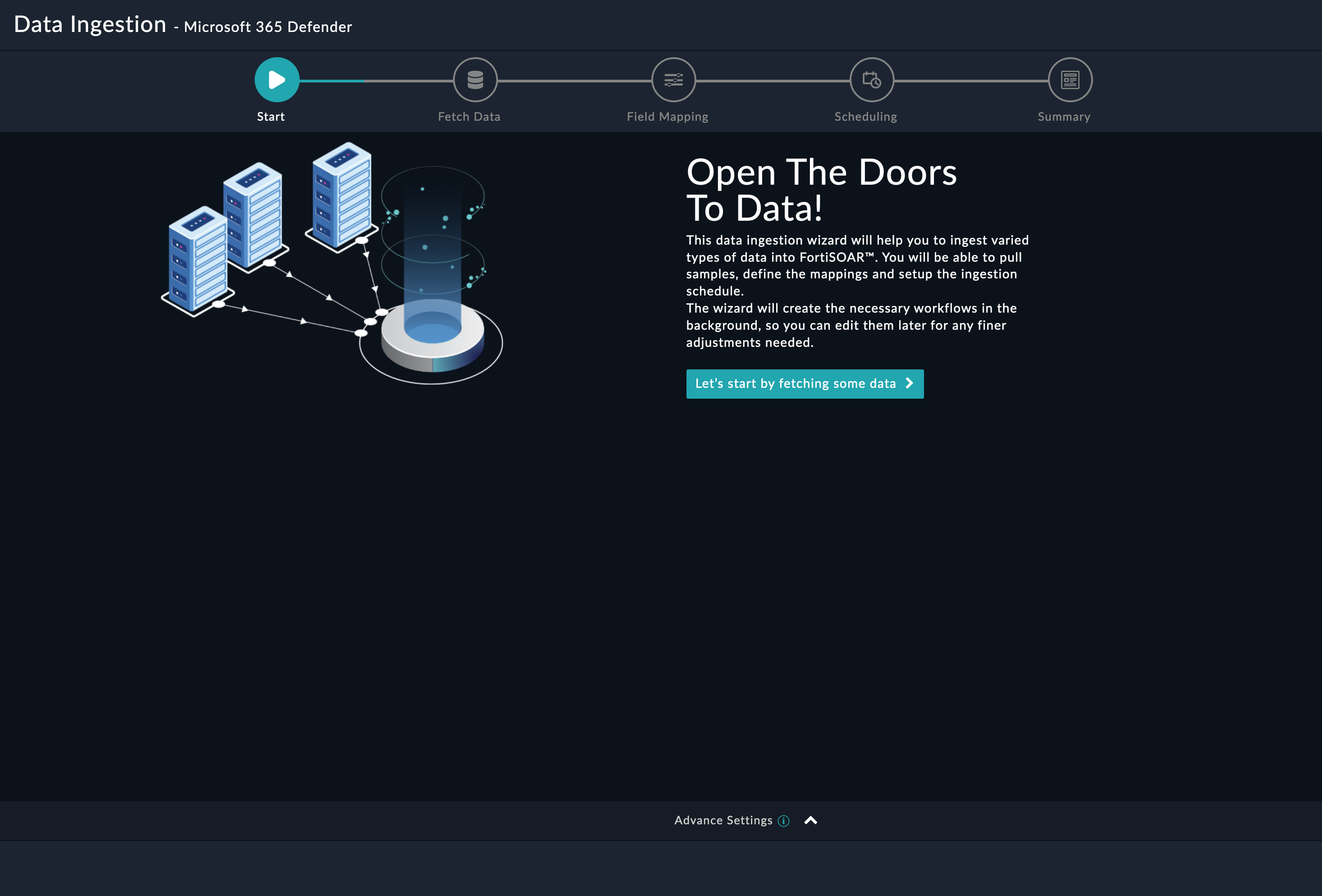 You can configure data ingestion using the Data Ingestion Wizard to seamlessly map Microsoft 365 Defender content to related FortiSOAR™ modules.