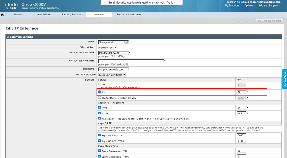 To use Cisco ESA connector, you must enable the AsyncOS API and SSH access on the ESA server using the following steps: