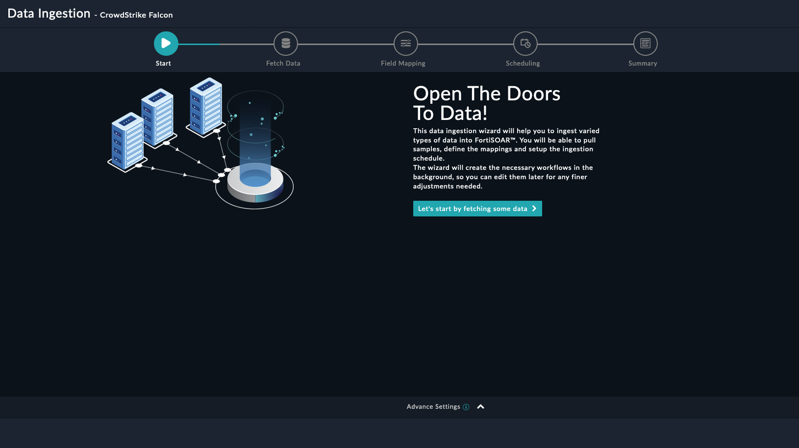 You can use FortiSOAR™'s Data Ingestion Wizard to easily ingest data into FortiSOAR™ by pulling detections from CrowdStrike Falcon. For more information, see the Data Ingestion Support section.