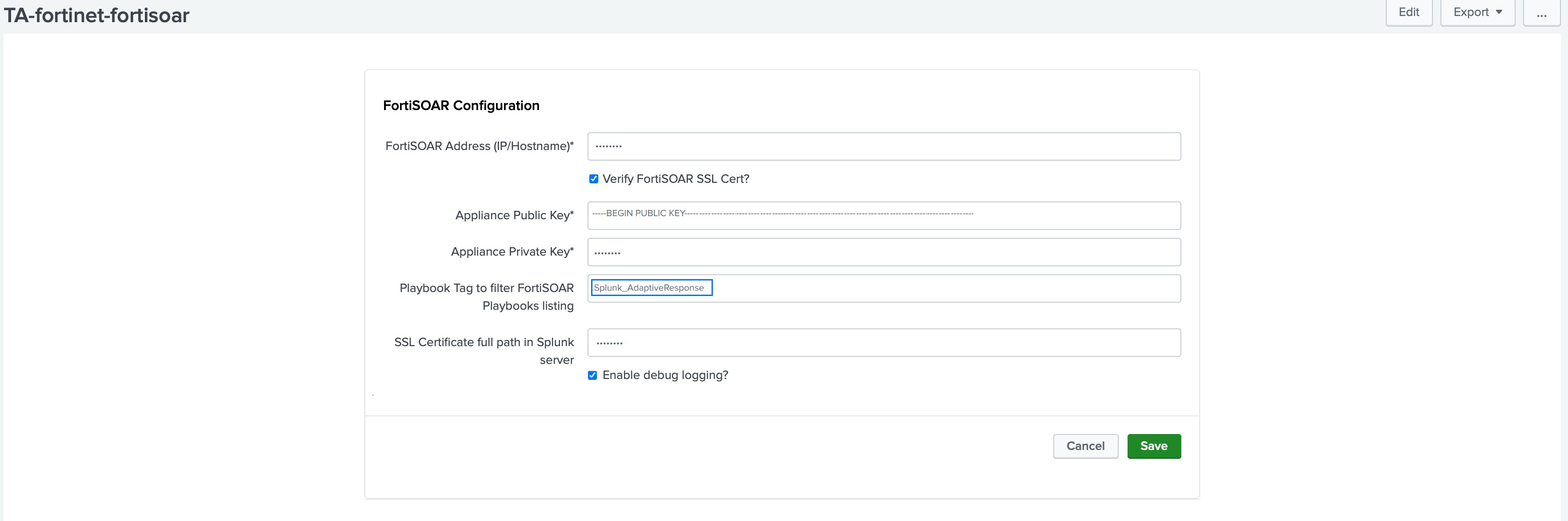 Important: The TA-fortinet-fortisoar-4.0.1.tar.gz file can be downloaded from Splunkbase.